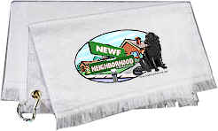 hand-embroidered, fringed Drool Towel was specially sized for Newfs at a