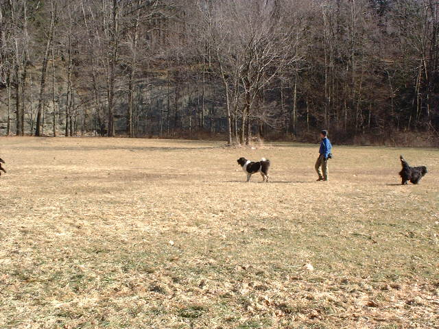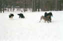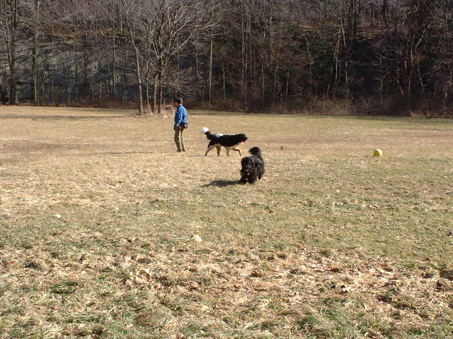 saw a husky approaching, Wooley started the alert, then with Zeus and Dino
