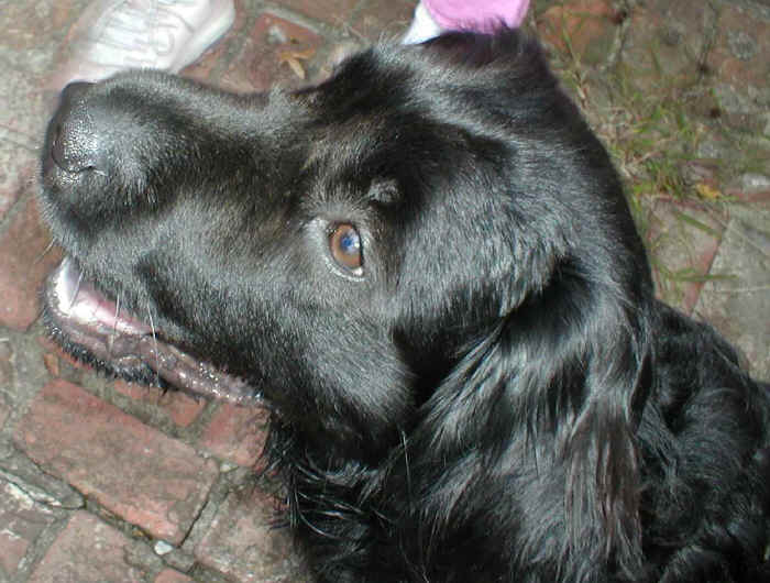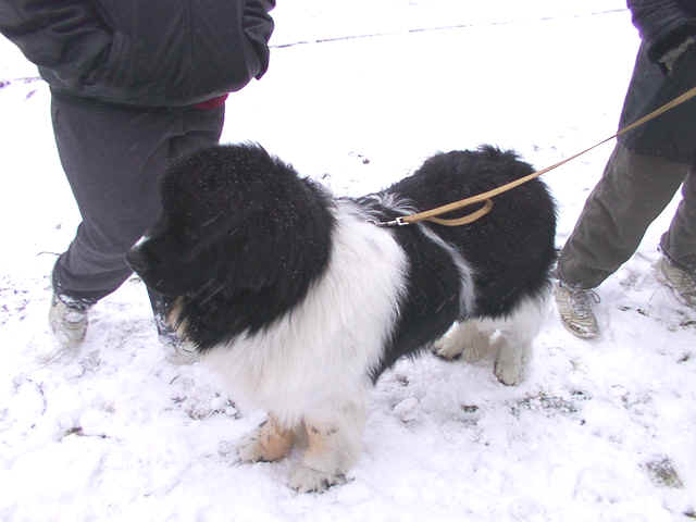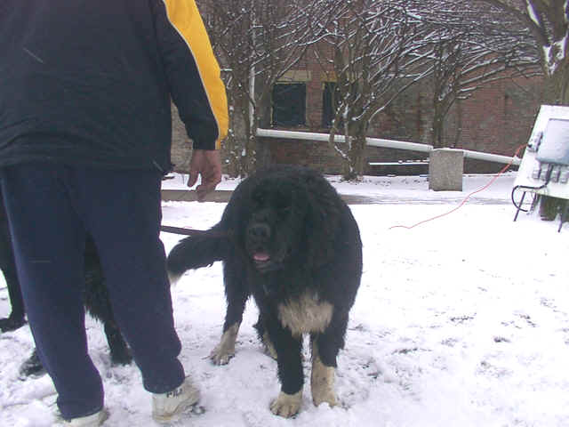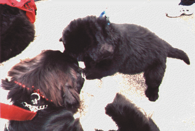 care Newfs need, Pebbles shakes her head with 2 foot long shoe strings and